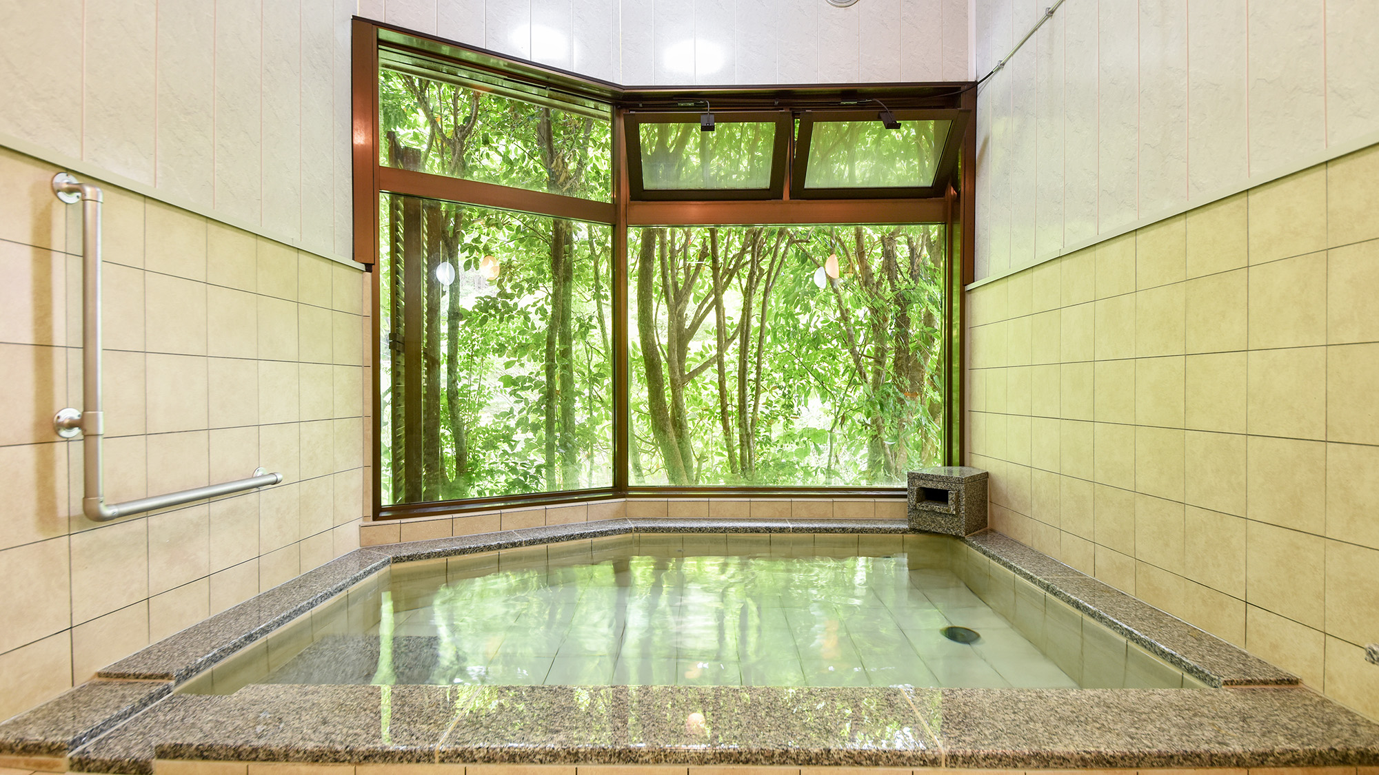 「湯浅温泉 さくらの湯」は お食事部屋や客室がある建物と別の温泉棟にて、 広々とした湯舟と高台の景色、開放感が心身ともにリラックスさせてくれるでしょう♪