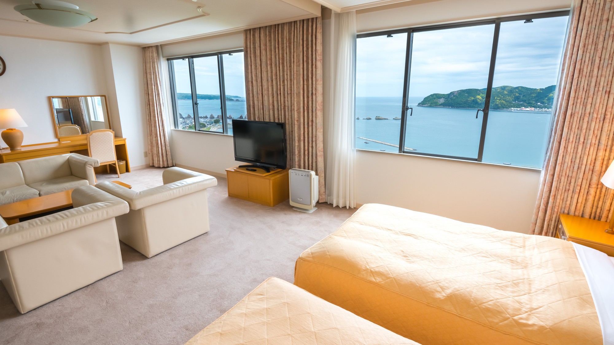 「白良荘グランドホテル」では目の前に広がる美しいオーシャン&スカイ・ビューの客室でゆったりと滞在することができます!