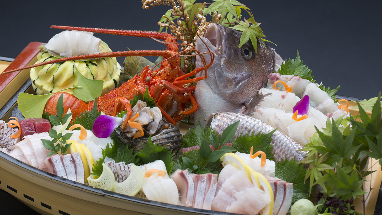 瀬戸内新鮮な魚介類を中心とした船盛付海の幸会席料理が名物の「双子島荘」