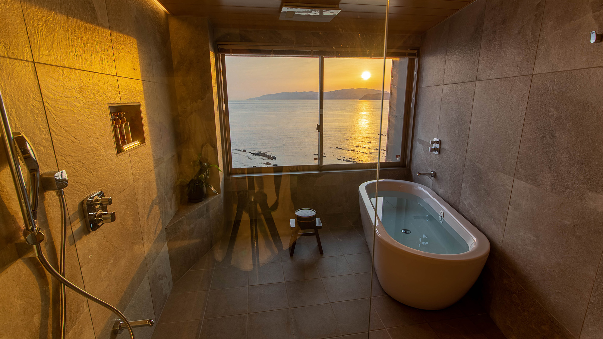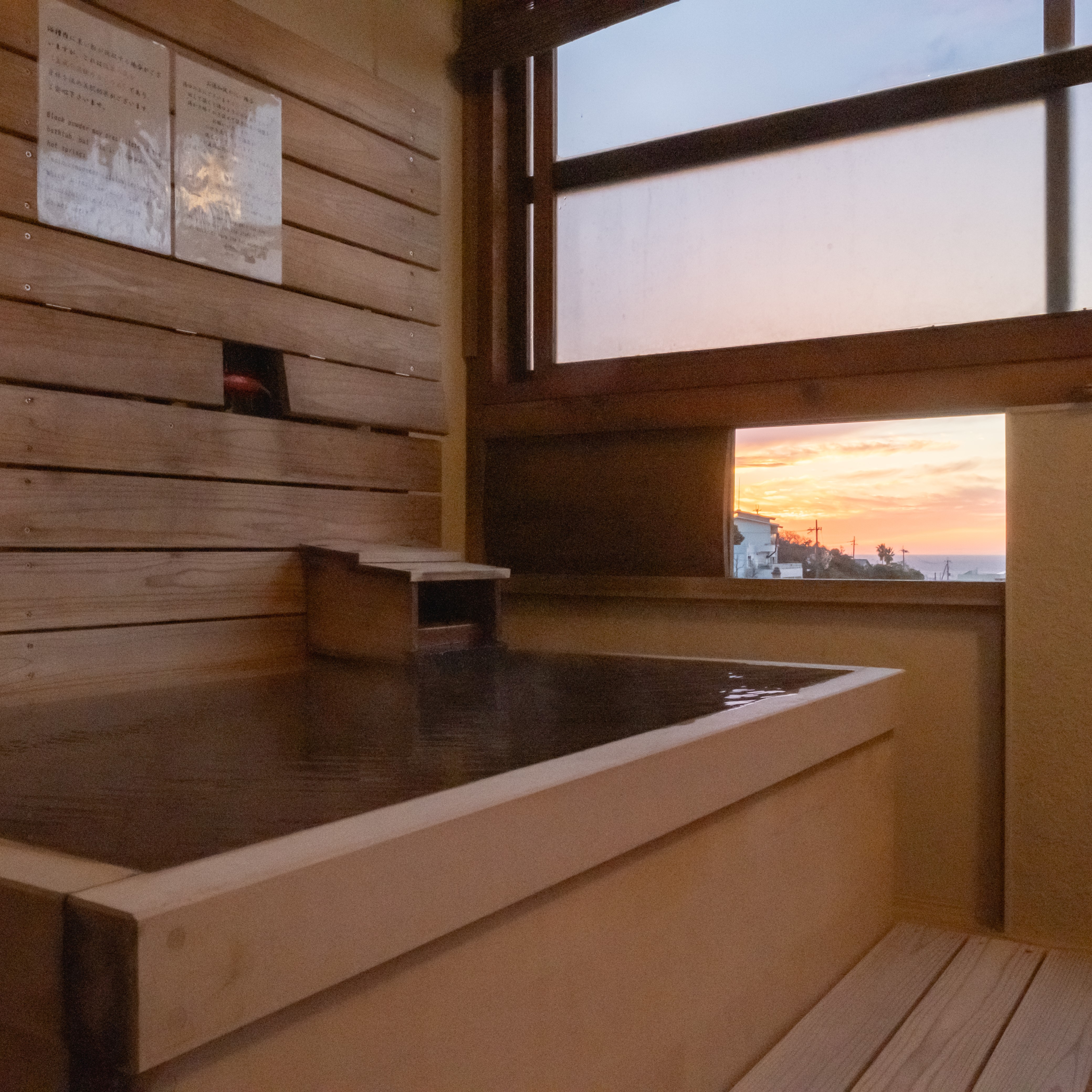 男性用からは夕日、女性用のお風呂からは朝日を望む事ができます♪