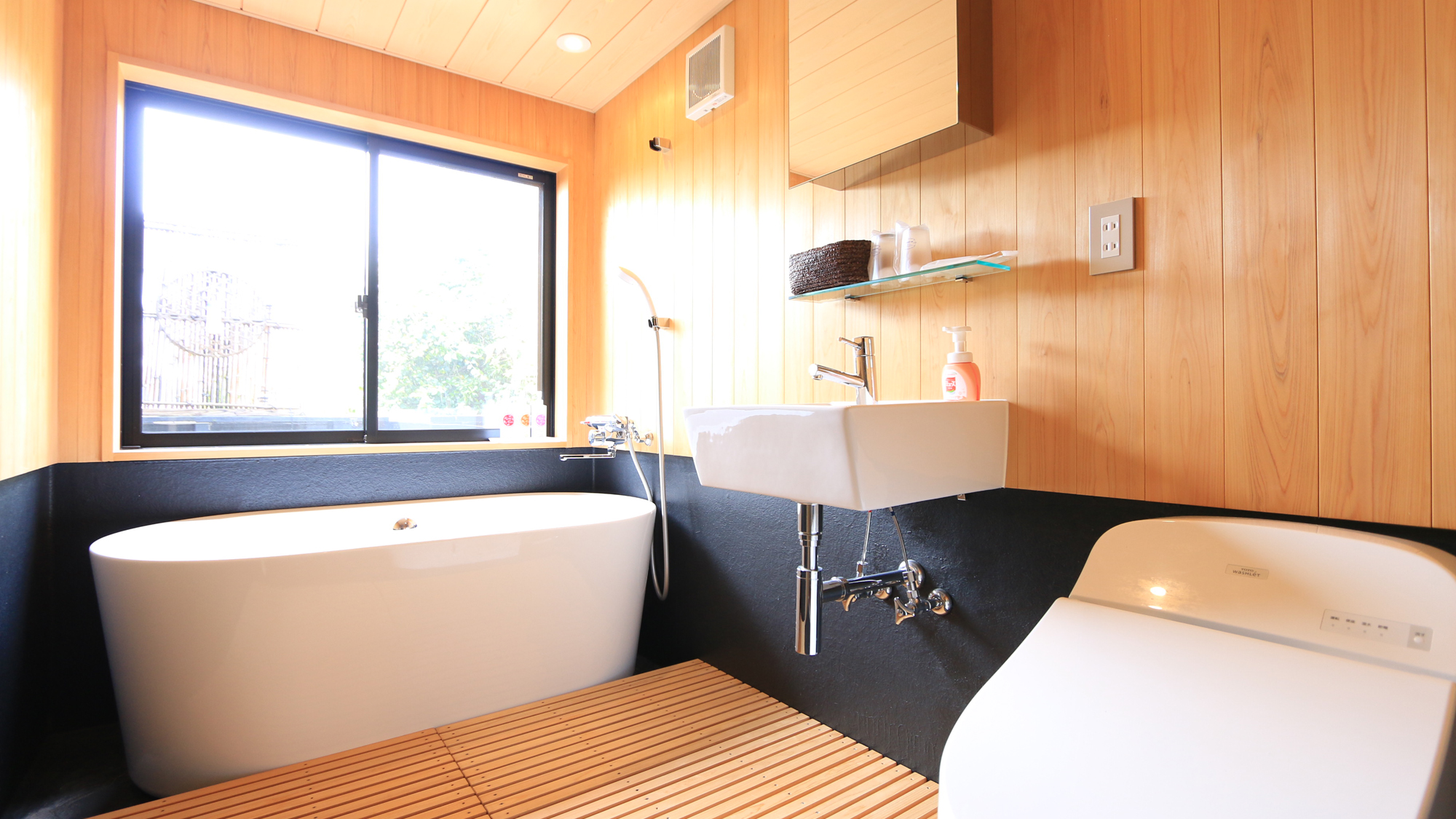 ひのき芳香漂う浴室でのんびりリラックス、体を心から癒します!
