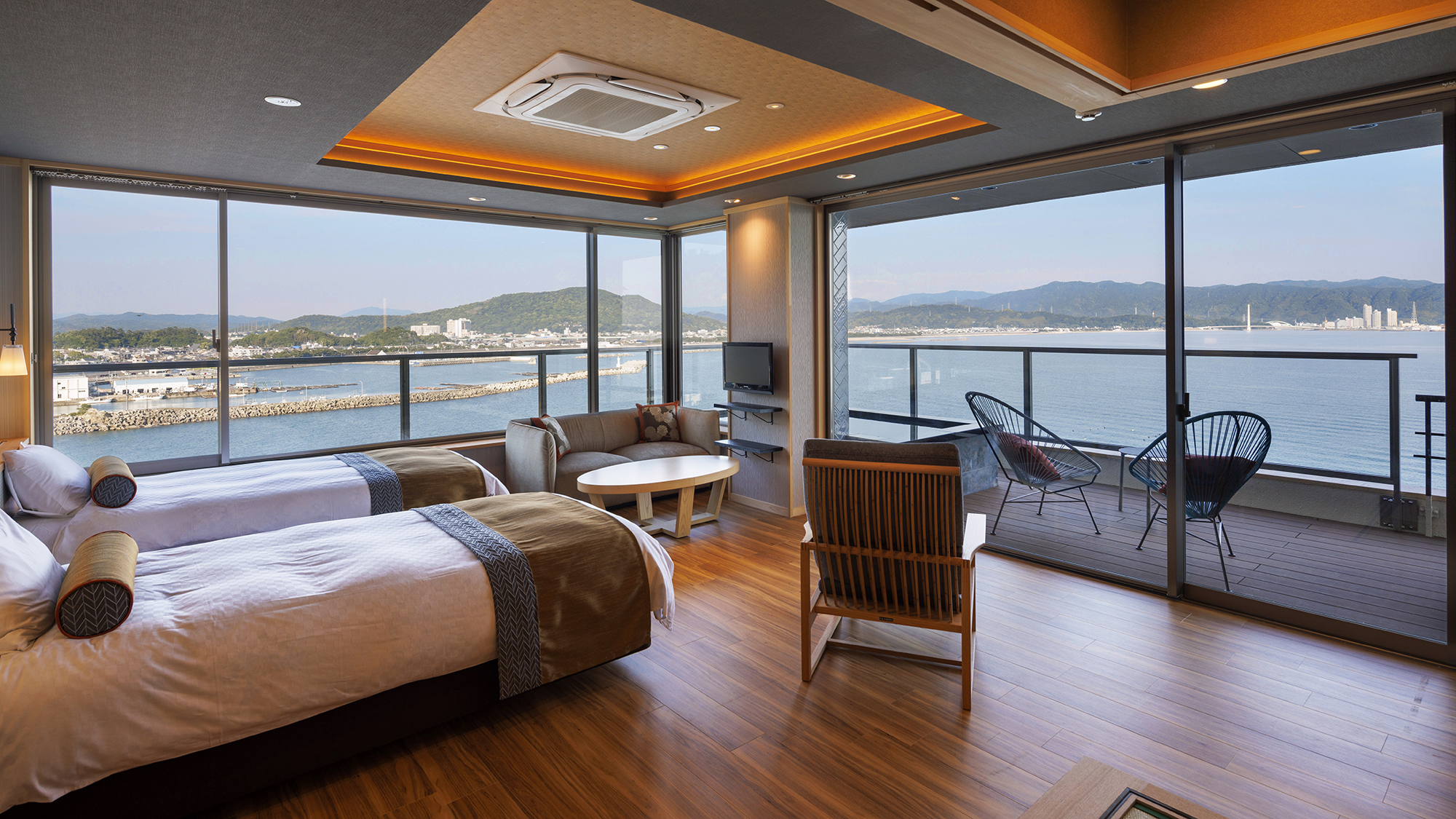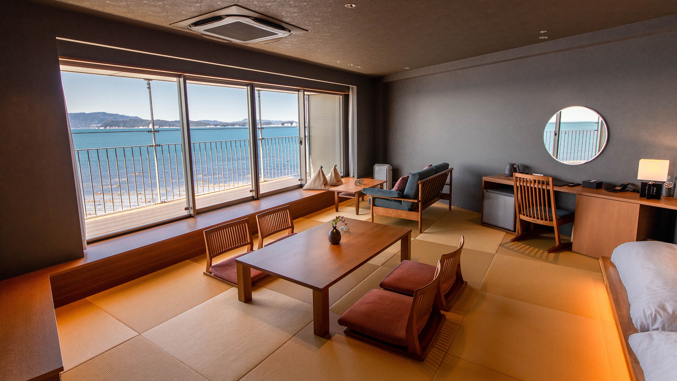 漁村の風景が広がり日常を忘れさせてくれるお部屋の数々、全室オーシャンビューのお好みのお部屋をお選びいただけます♪