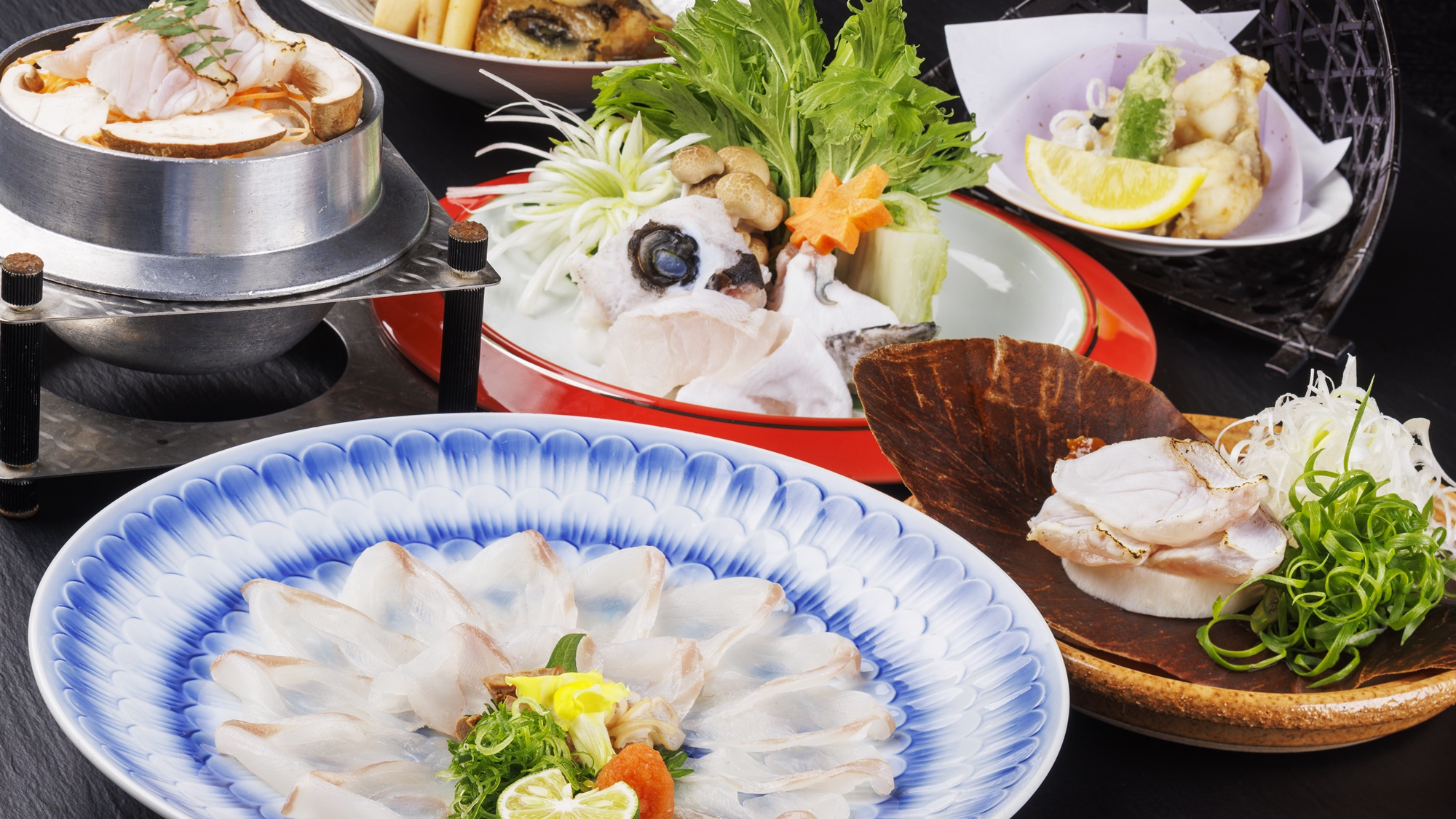 クエ鍋/クエ薄造り/クエたたき/クエの唐揚げ/クエの炭火焼