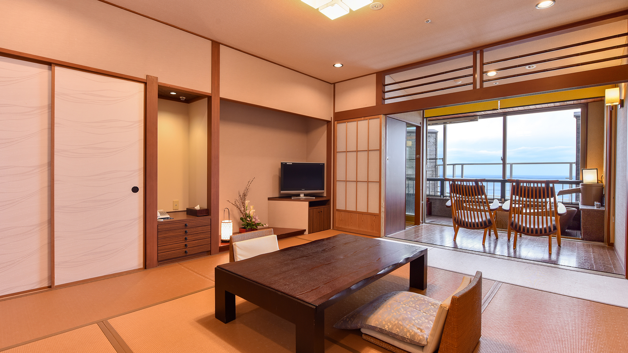 全室海側に面しており、時とともに移ろいゆく風景を楽しむ、離れ客室と別邸を備え、紀州温泉ありがとうの湯と新鮮な海幸料理が自慢の宿「漁火の宿 シーサイド観潮」