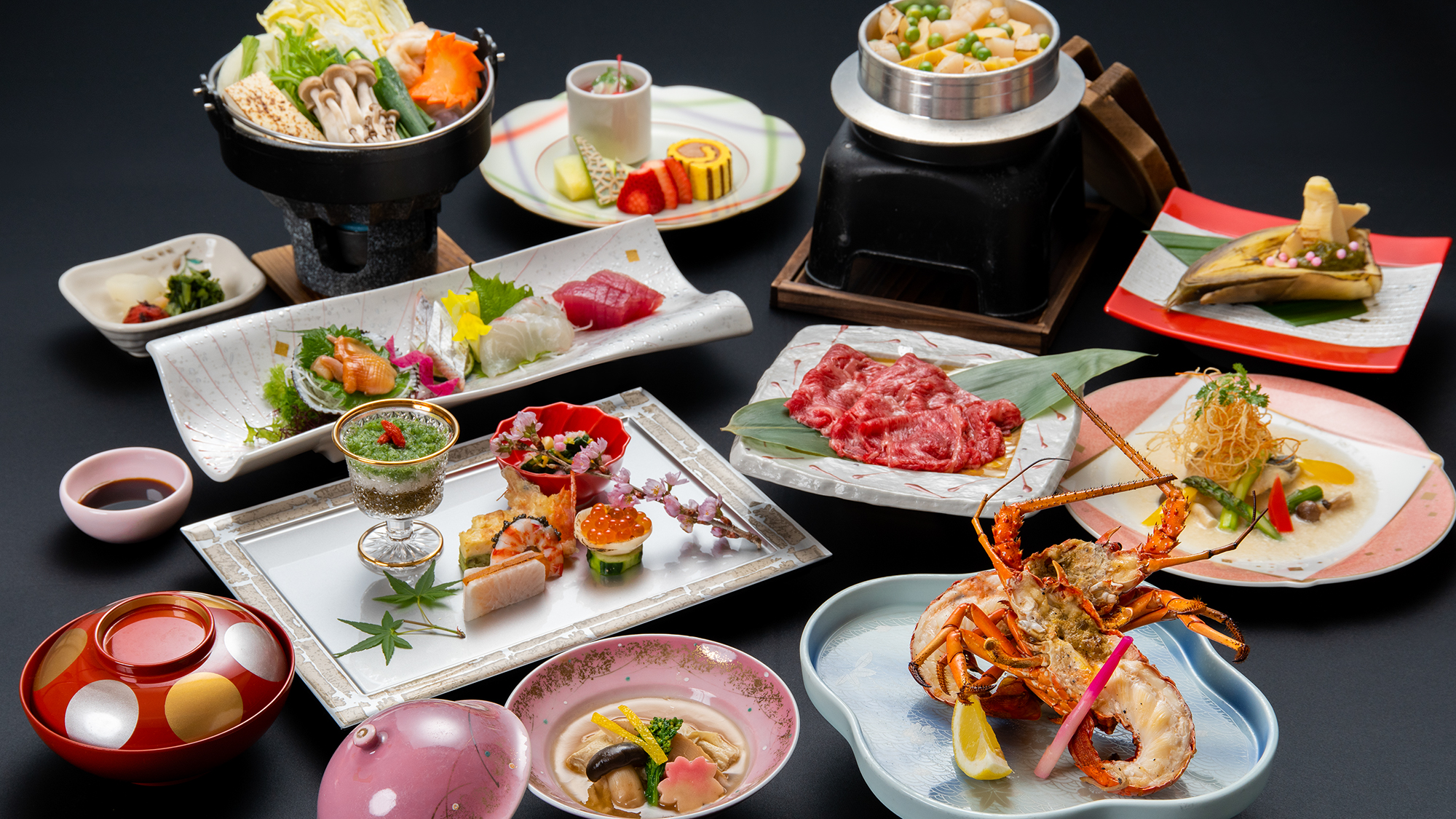 南紀の味覚を堪能できる「伊勢海老」、「本クエ」、「梅美豚」、を使った会席プランもおすすめ!