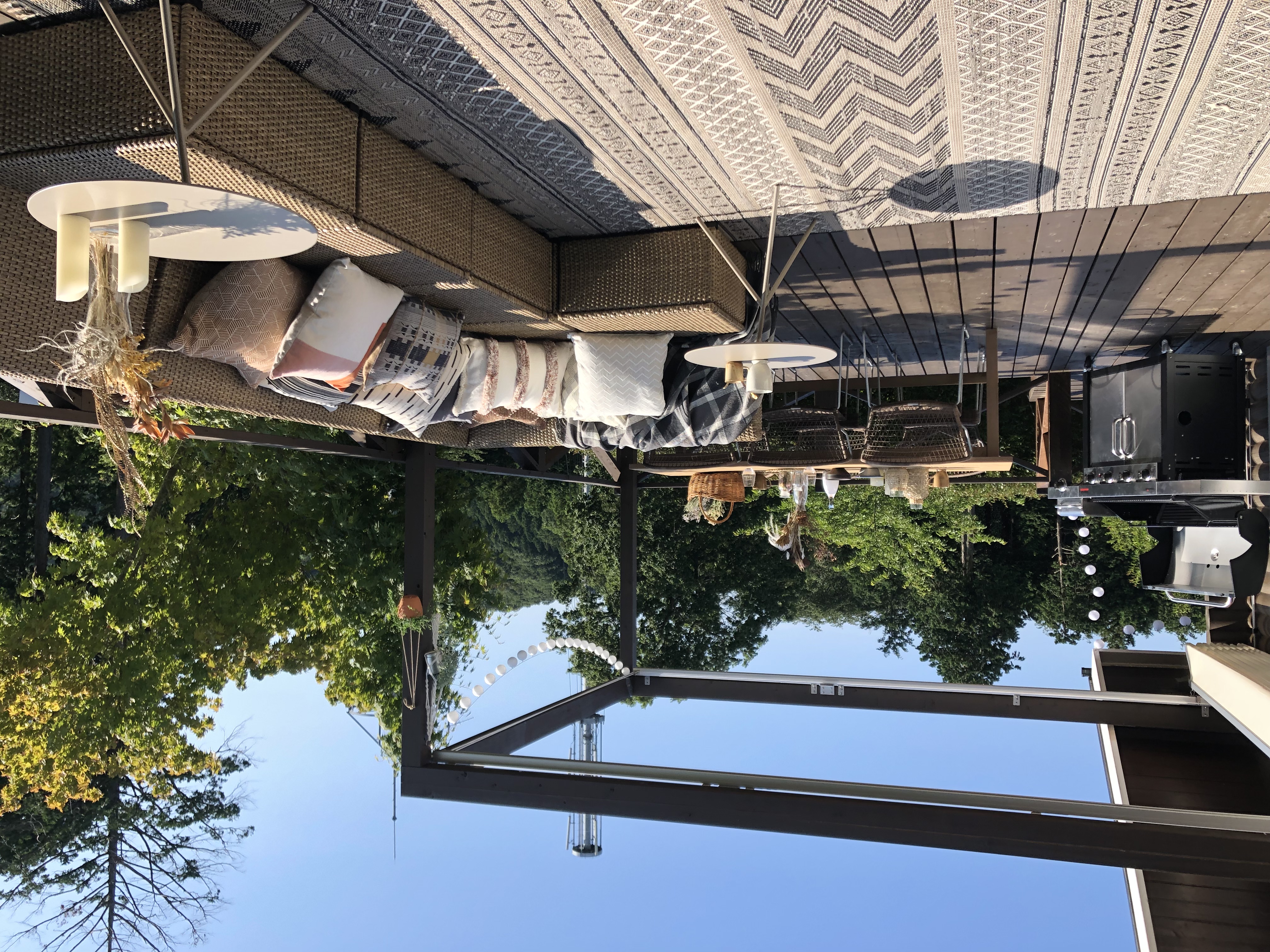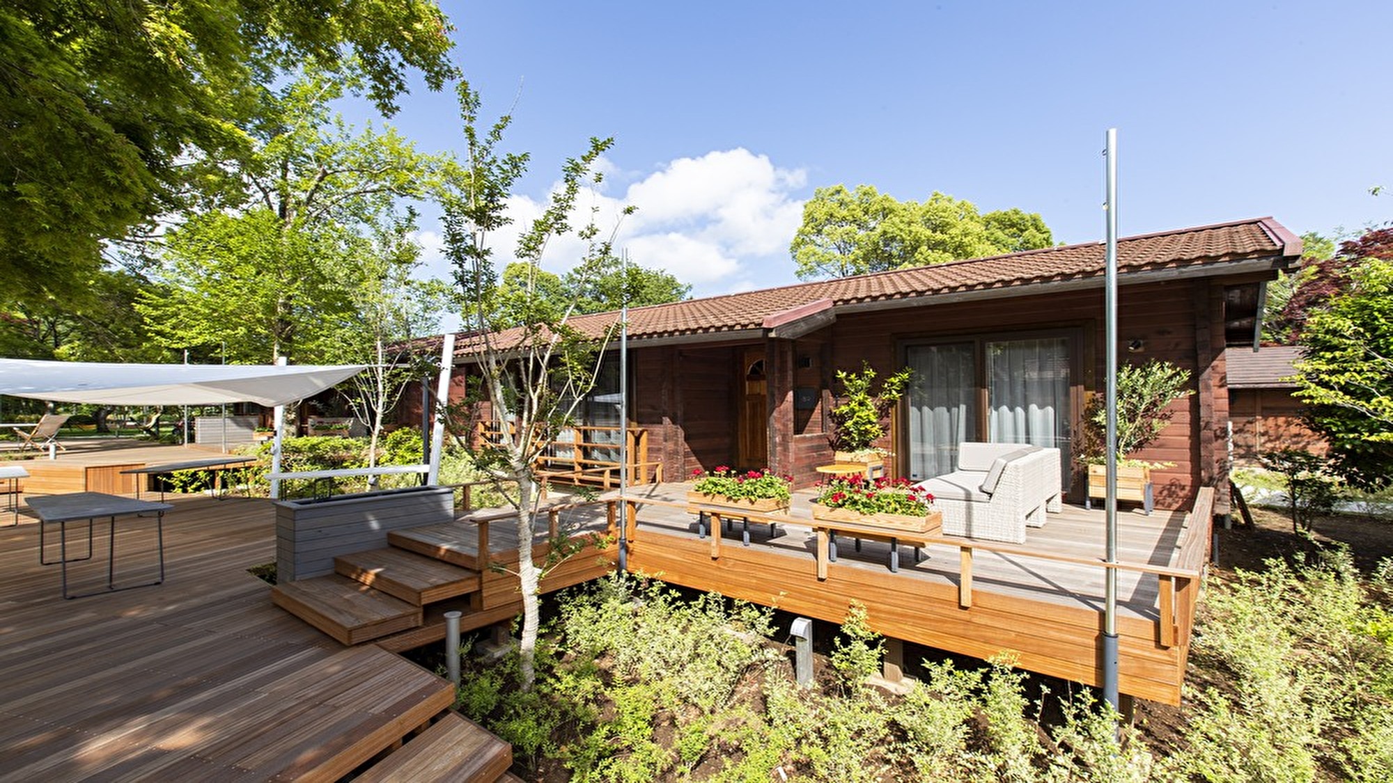 緑に囲まれたウッドテラスで思い思いに過ごす、BBQ も、焚き火も、室内で寛ぐことも、それぞれの楽しみ方で自由な時間をお過ごしください♪