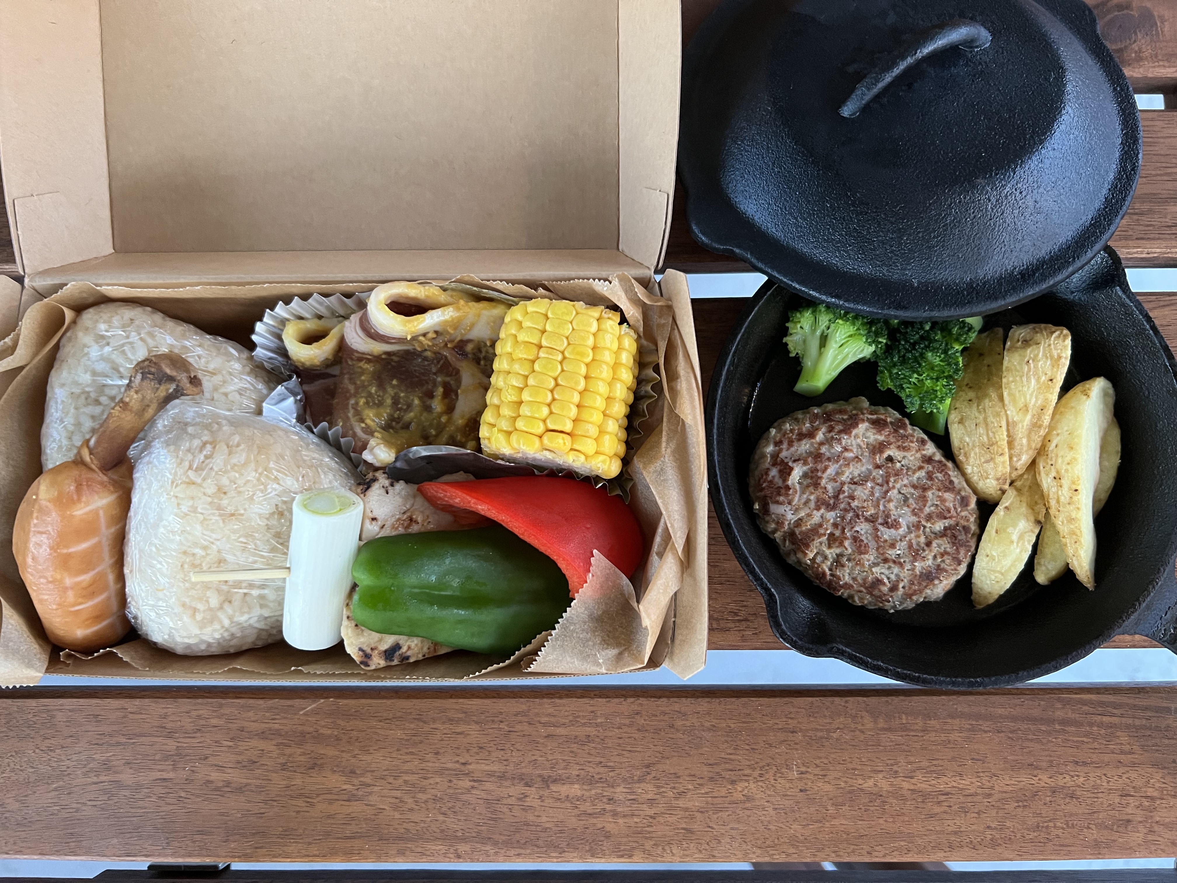お食事は、地産地消、茨城県産の食材を使用したBBQセットでお楽しみください。