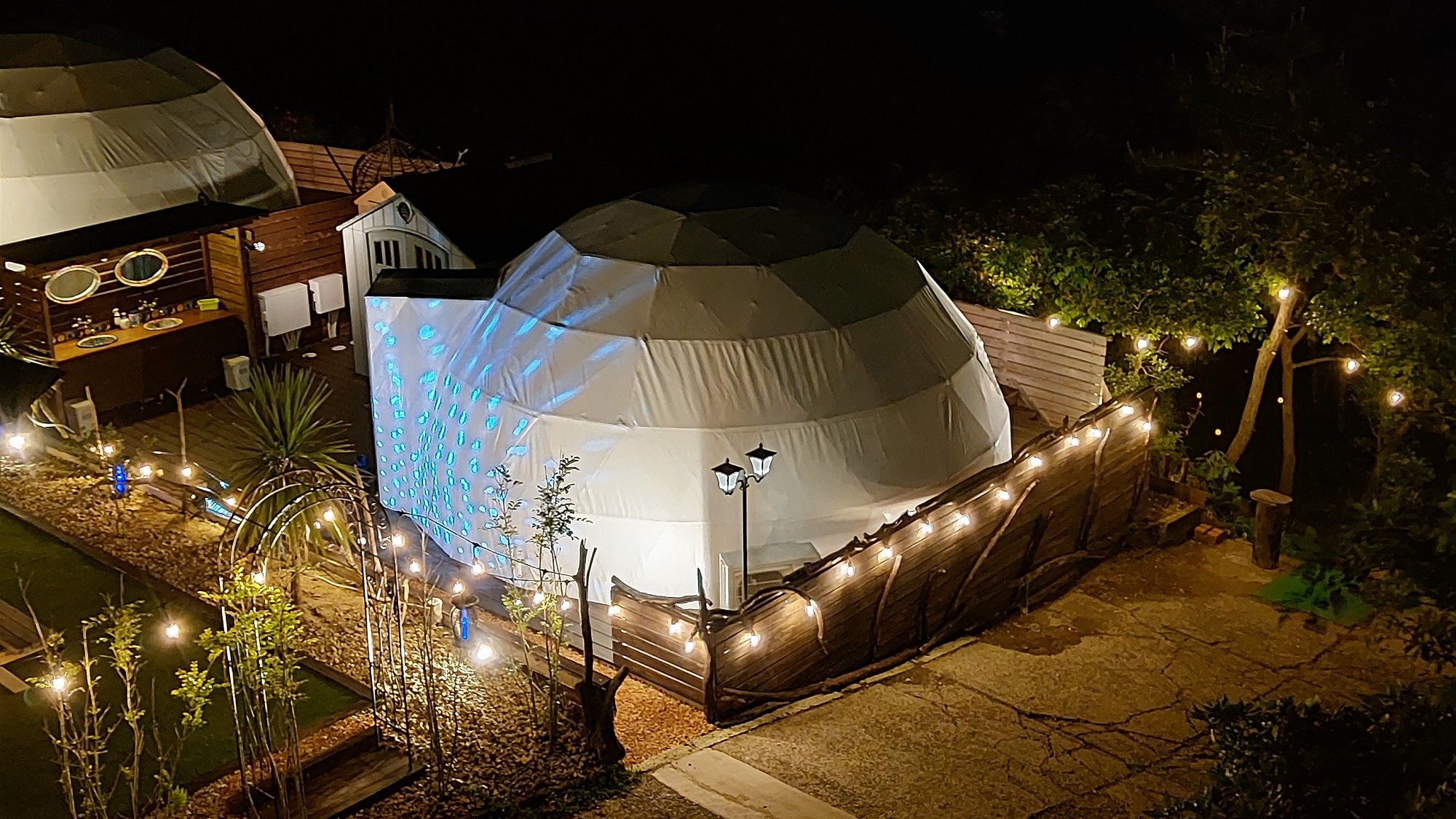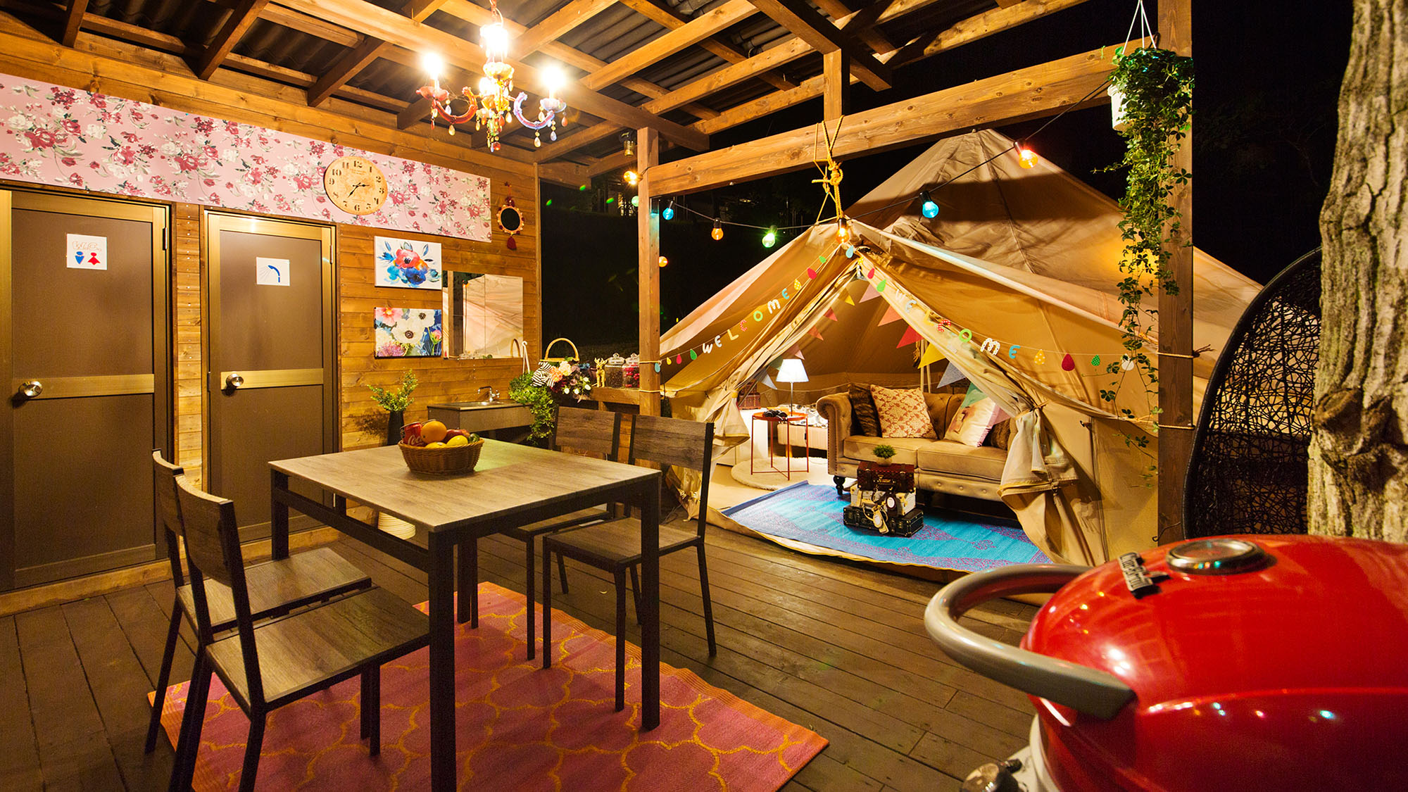 ラグジュアリーなデザインと共に最高の休日をグランピング体験で過ごすことができる「井頭温泉チャットパレス」