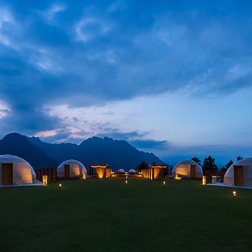 様々なグランピングスタイルのテント、キャビン、ヴィラで豪華BBQ!