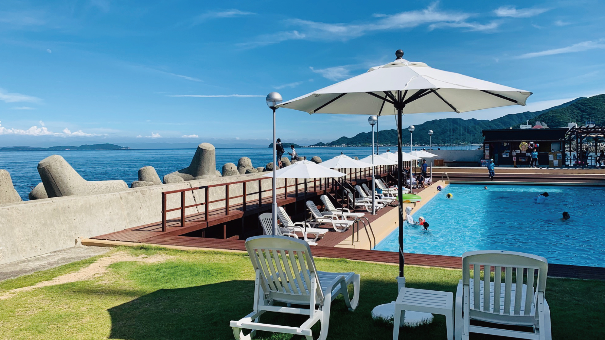 5分ほどの距離には大浜海水浴場もあり宿には屋外プール、お子様と一緒に楽しめる釣堀とご家族で楽しめる要素がいっぱいの海辺の宿「淡路夢泉景」