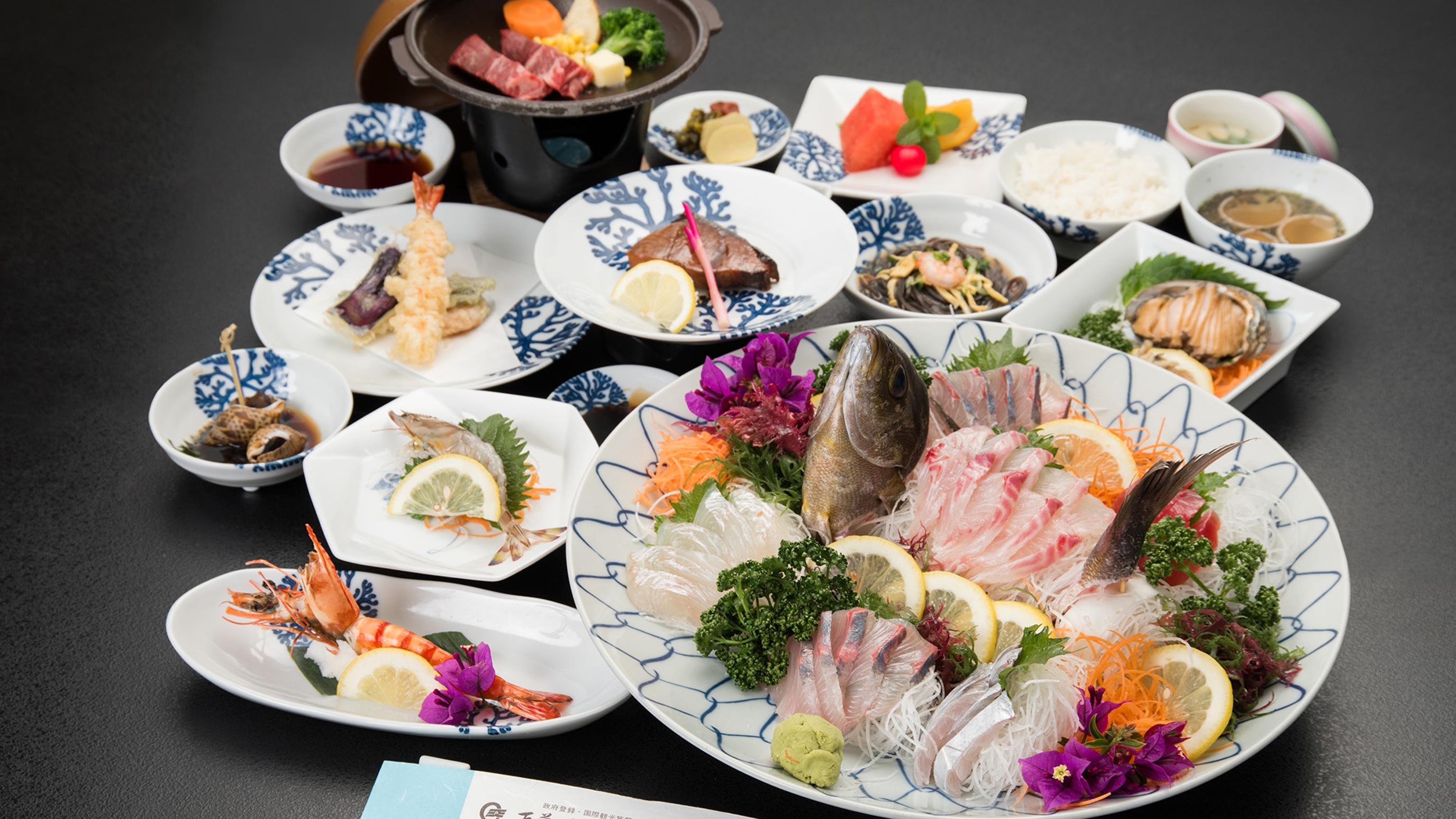 3つの美しく碧い海に囲まれた漁場豊かな天草ならではの、新鮮な海の幸と旬の食材をふんだんに使った会席を、お腹いっぱいお召し上がりください!