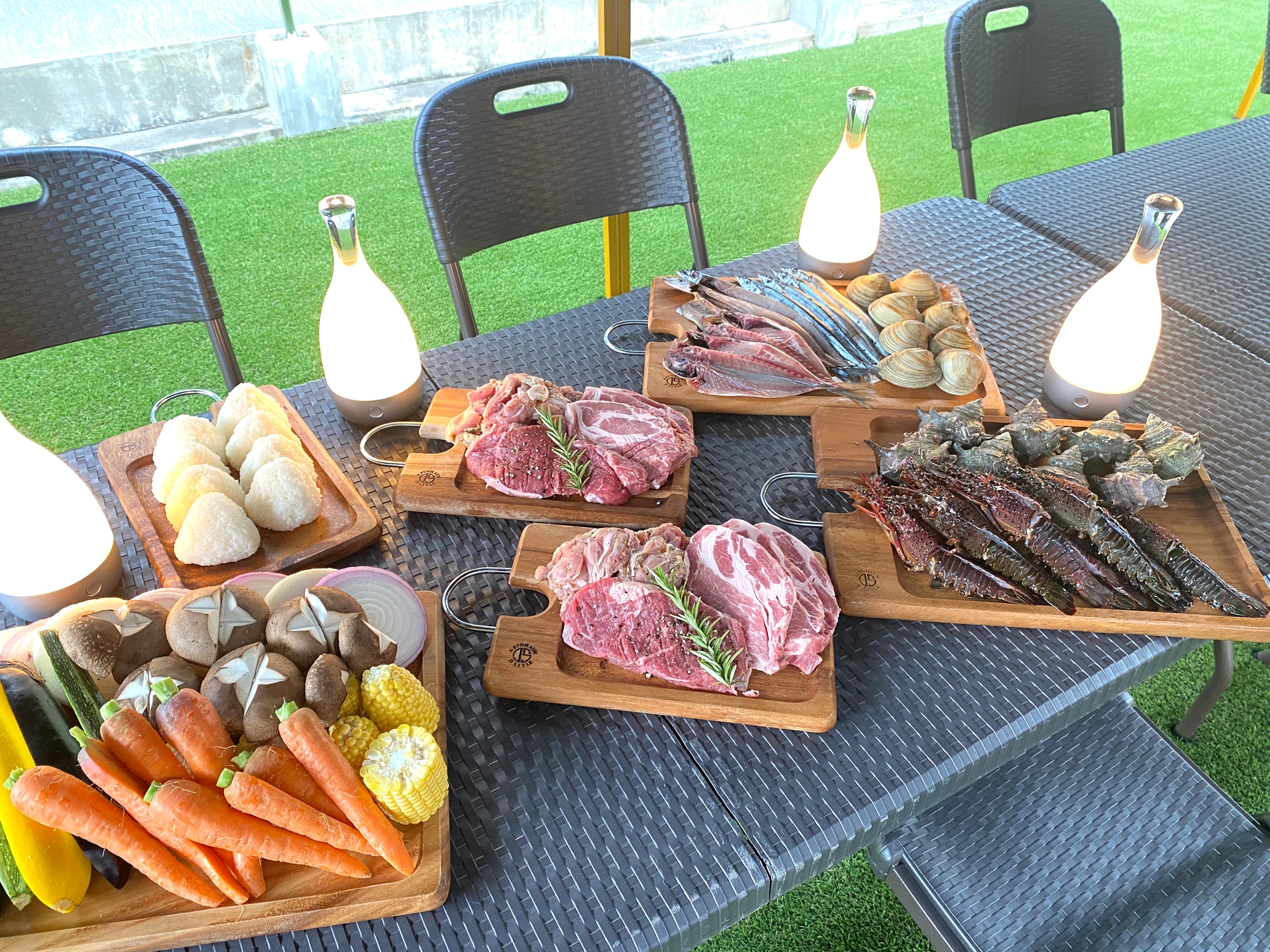 グランピングの醍醐味でもあるBBQは海辺にて、新鮮な海鮮とお肉で思う存分お楽しみください!