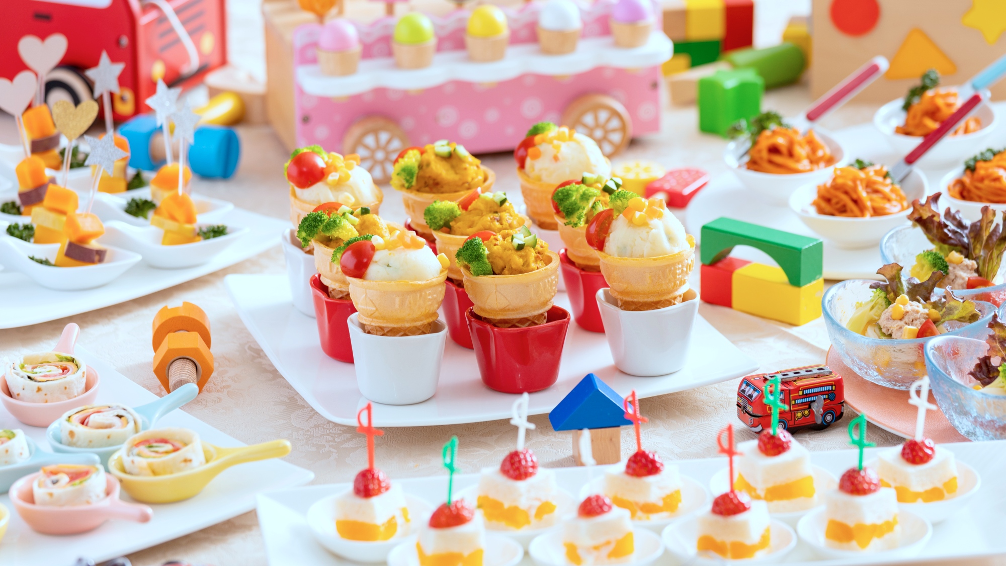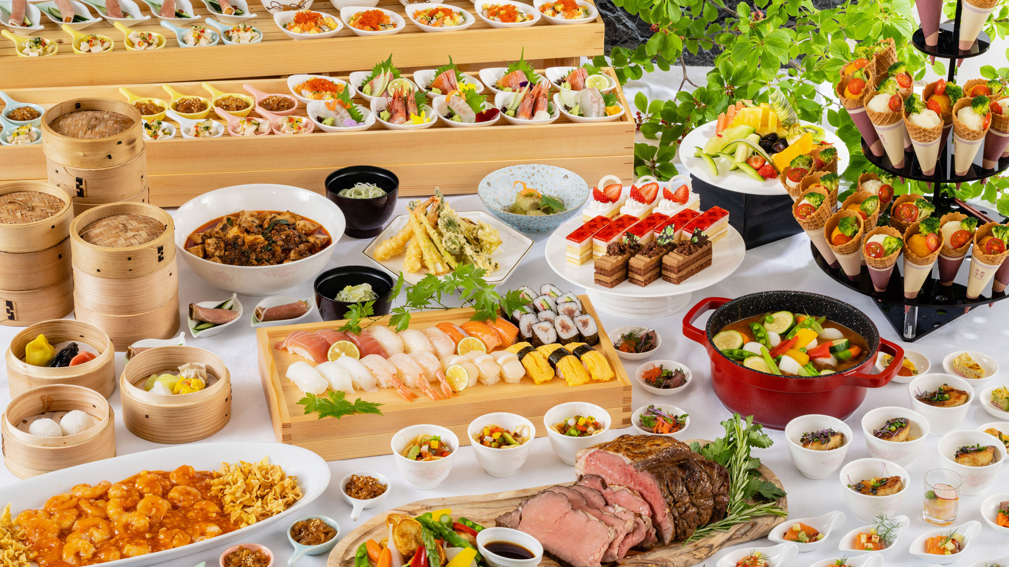 お料理はミキハウス子育て総研とコラボしたキッズメニューに和洋中の専属シェフが腕を振るう自慢のバイキング!