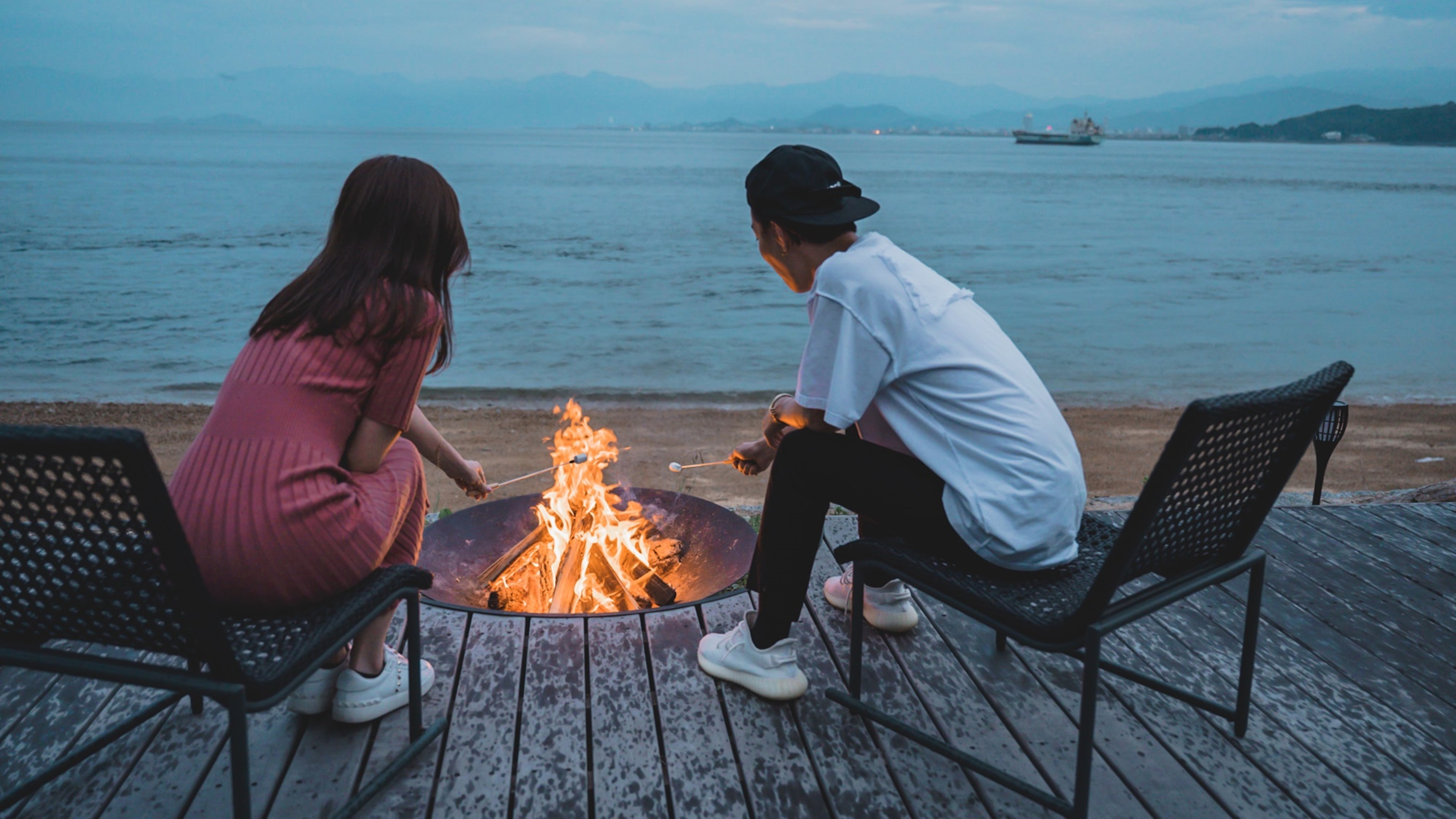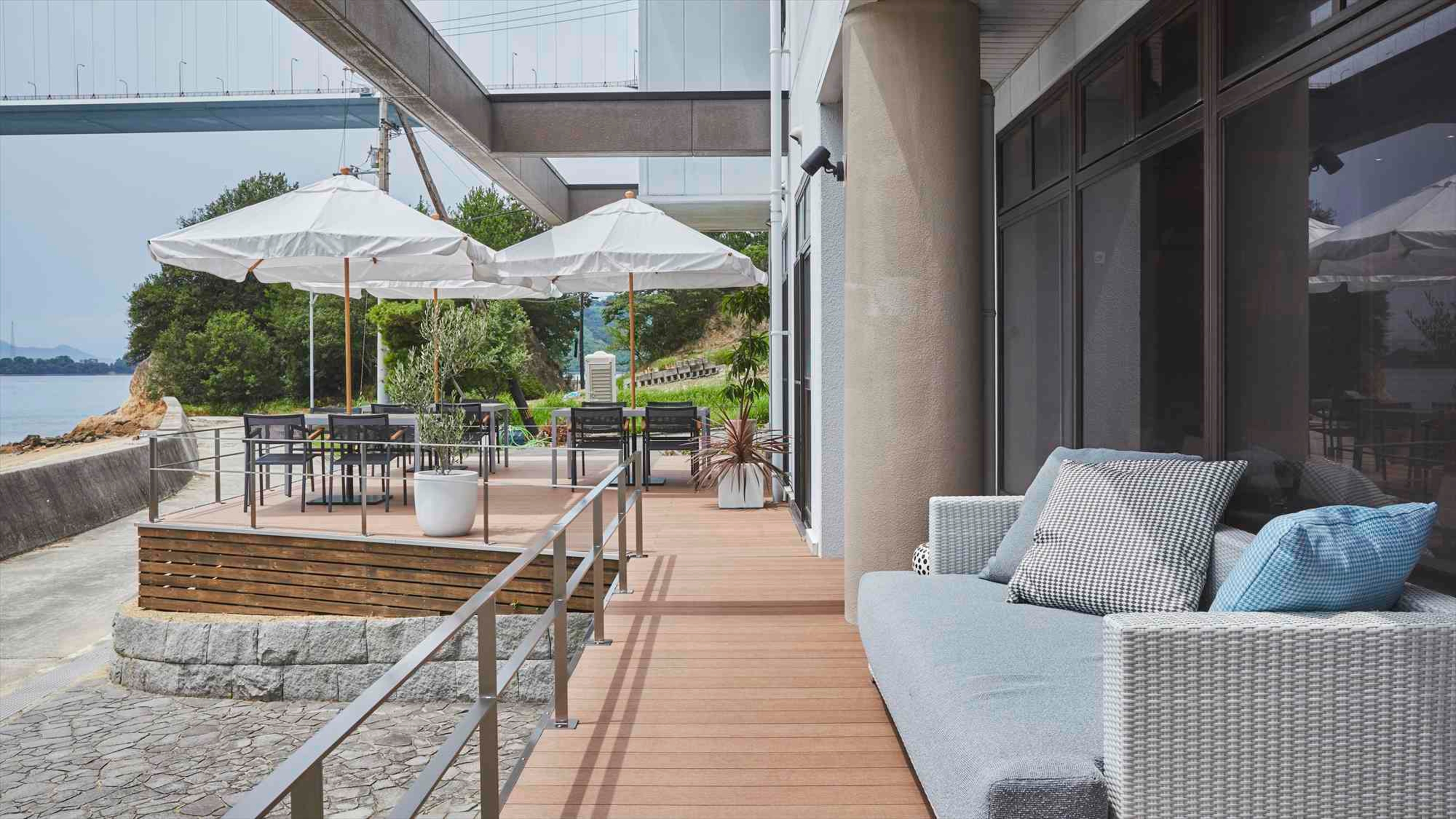 南デッキでは瀬戸内の広い海や行き交う大型船を眺めながらドリンクを頂け、自然の中でここだけの特別なひとときを思い思いに…