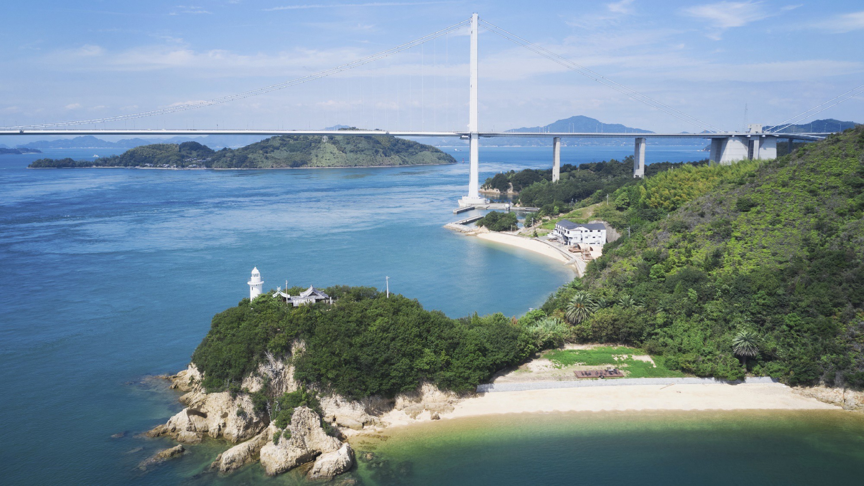 極上の島時間でステイすることができる「GLAMPROOK しまなみ」が位置する馬島(うましま)は、愛媛県今治市の市街地から来島海峡大橋を渡り、車で15分ほどのところにある絶景が広がる特別な島!