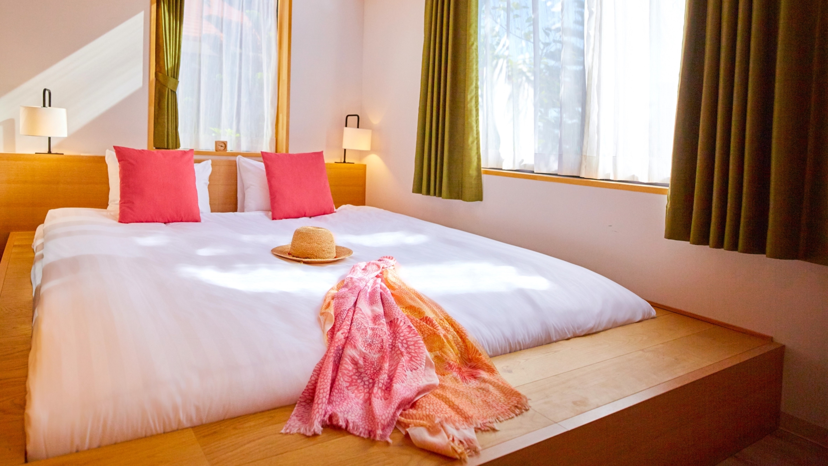 モダンでカジュアルな遊び心いっぱいの客室はどの部屋にもロフトを備えたヴィラタイプなので小さなお子様と一緒でも、周りを気にせず安心して滞在することができるので安心。