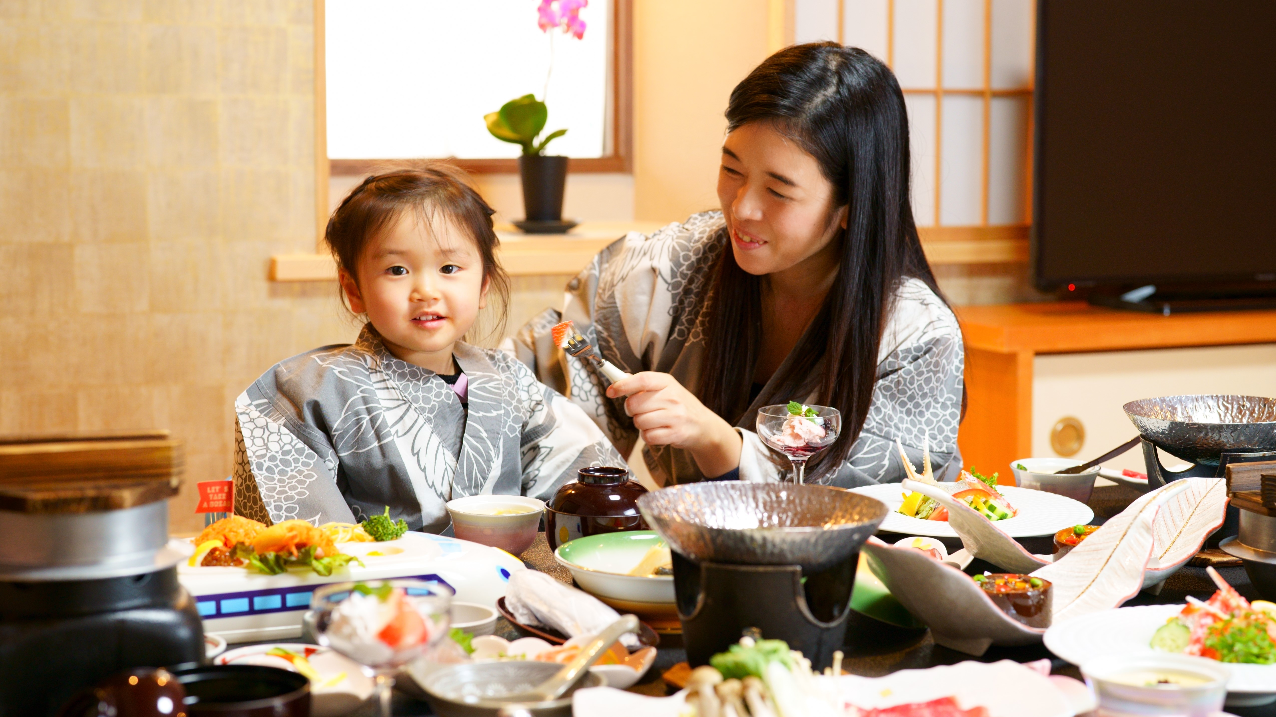 予算を抑えつつ、お部屋で気兼ねなく過ごせるプランの嬉しい特典は、未就学児のお子様の代金は不要!(お子様ランチ、布団、朝食付き)そして夕食は、安心のお部屋食なのでご家族でゆっくりお楽しみいただけます♪
