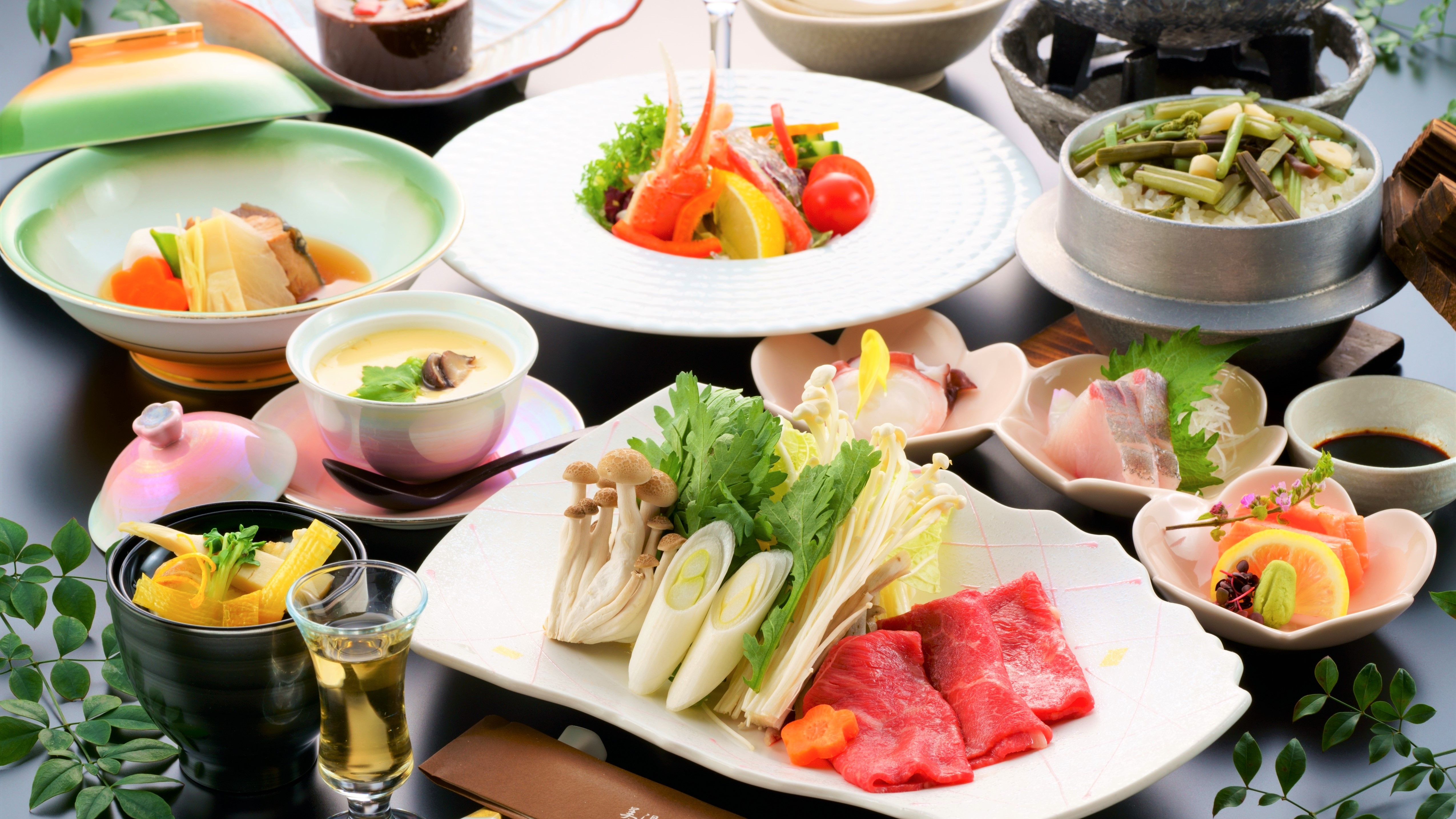 夕食は大分を代表する豊後水道で獲れた海の幸や国産牛など地元の食材をふんだんに使用した約12品の和食会席料理をお部屋食にて頂くことができます♪