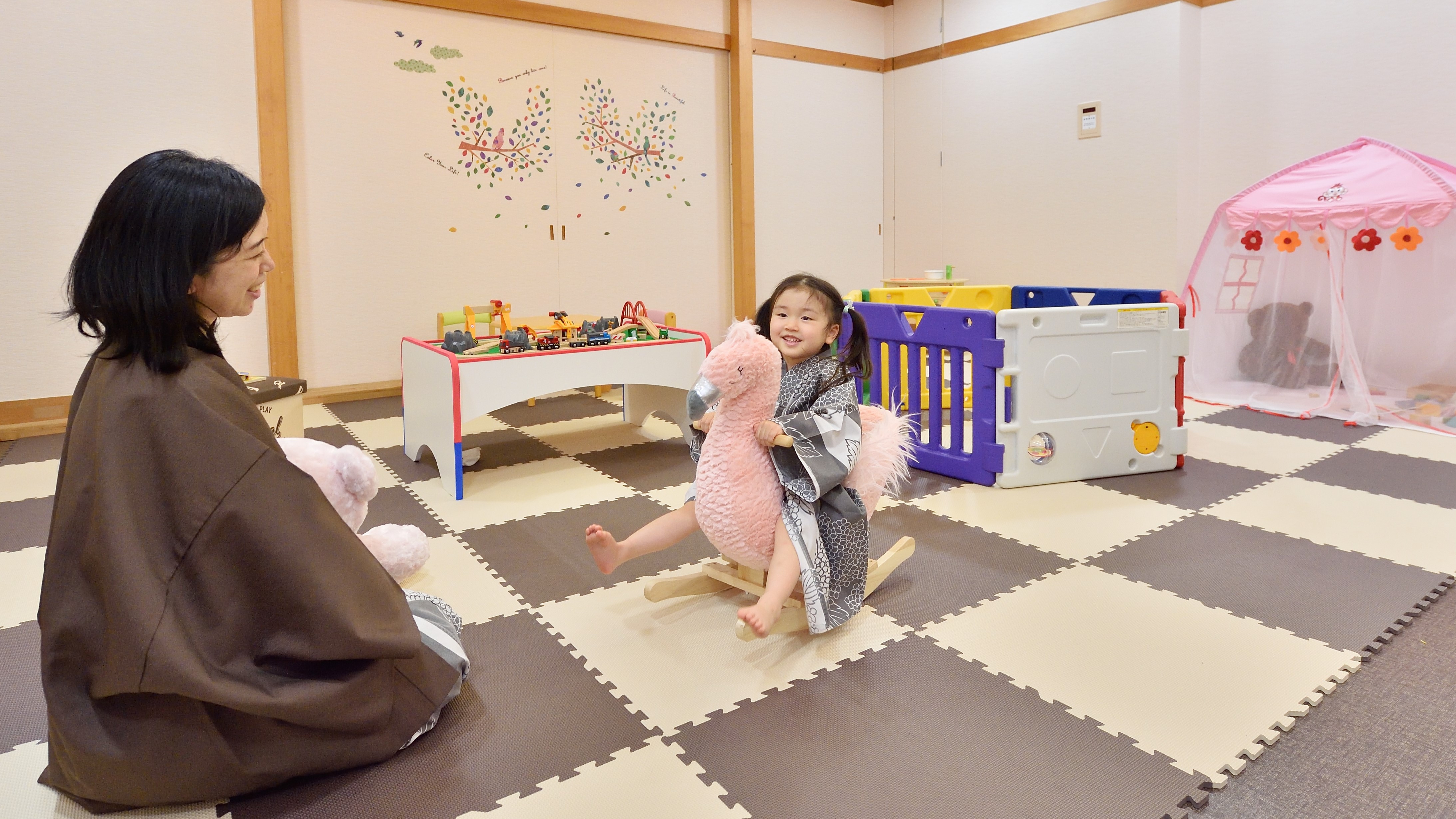 ベビー布団やおもちゃ箱、お子様用補助便座など、小さなお子様を連れての宿泊が快適にできるよう配慮されているので安心♪